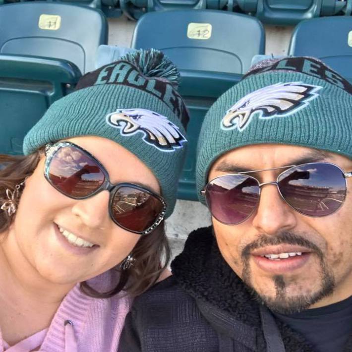 Alejandro and Jessica in Philadelphia on January 1, 2017, watching the Eagles beat the Dallas Cowboys 27-13.