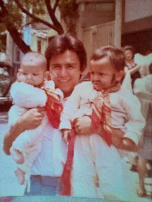 Alejandro is the little boy on the right. The little boy on the left is Alejandro's cousin Daniel. The man holding the two boys is Daniel's father, Alejandro's uncle, whose name also is Alejandro.