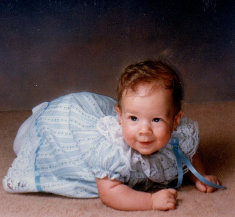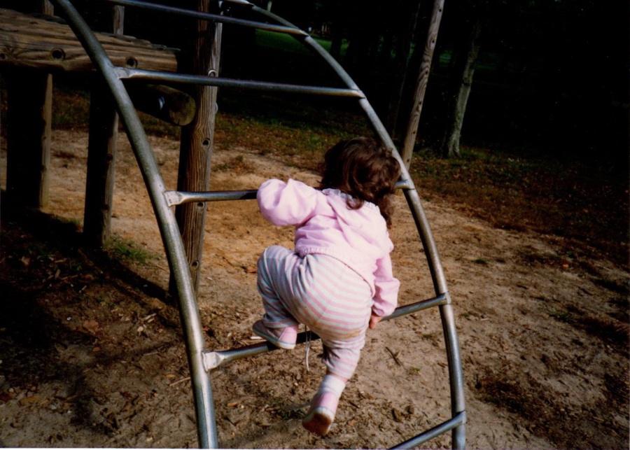 Jackie at the playground. I know this doesn't show her face, but it shows her unwavering courage and indomitable will. Look at the space between the bars compared to the size of her little body. This, in my opinion, is one of the truest pictures of Jackie ever taken. She made it all the way to the top that day and then all the way down with no help from anyone. Her unshakable courage and unstoppable will have served her well for her entire life.