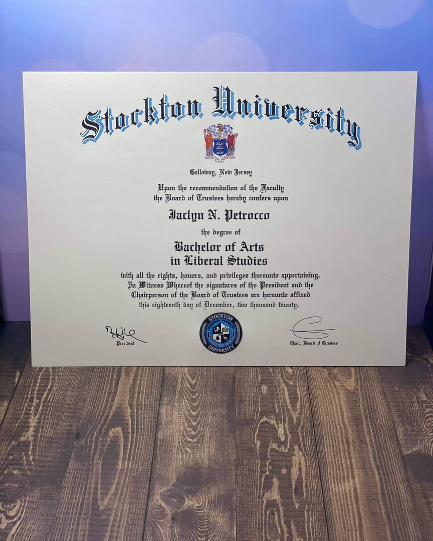 Jackie on October 21, 2020, while she was completing the last two classes for her college degree from Stockton University in Galloway, New Jersey.